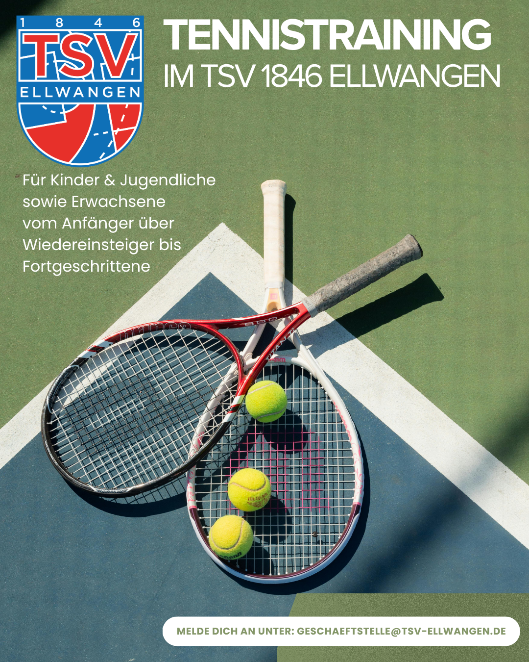 Tennistraining im TSV 1846 EllwangenTennis – als Breiten- und Familiensport bietet für alle die Möglichkeit, von der Kindheit bis ins Alter spielerisch aktiv zu sein! Unsere schöne, gepflegte Tennisanlage mit gut ausgestattetem Tennisheim bietet dazu das bestens geeignete Umfeld.
