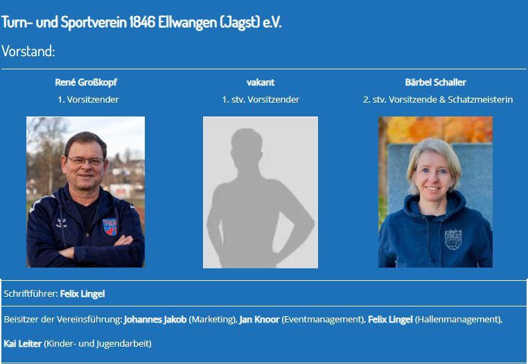 c) Die Vereinsführung – Bestehend aus dem Vorstand, dem Schriftführer und maximal sechs Beisitzern.